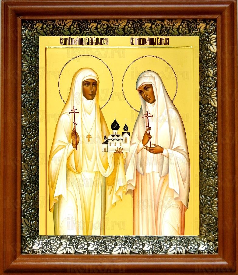 Икона Елизавета и Варвара в киоте с басмой Виноградная Лоза (UV-печать)(30377)