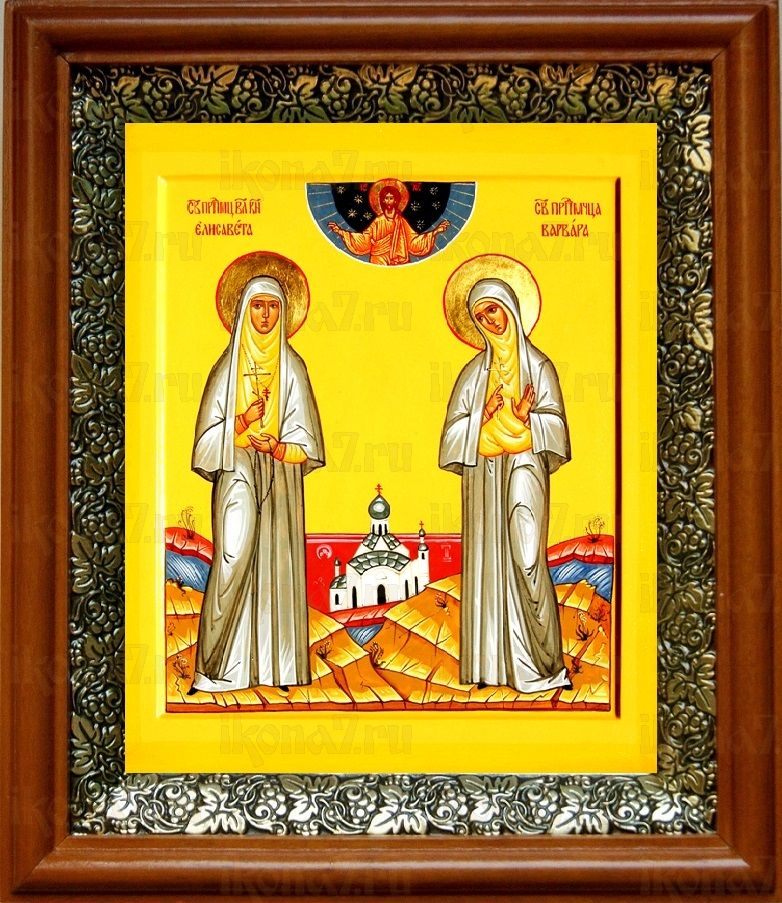 Икона Елизавета и Варвара в киоте с басмой Виноградная Лоза (UV-печать)(30378)