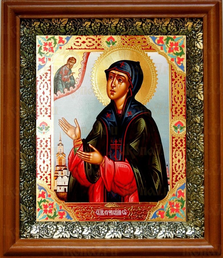 Икона Евфросиния Суздальская в киоте с басмой Виноградная Лоза (UV-печать)(30359)