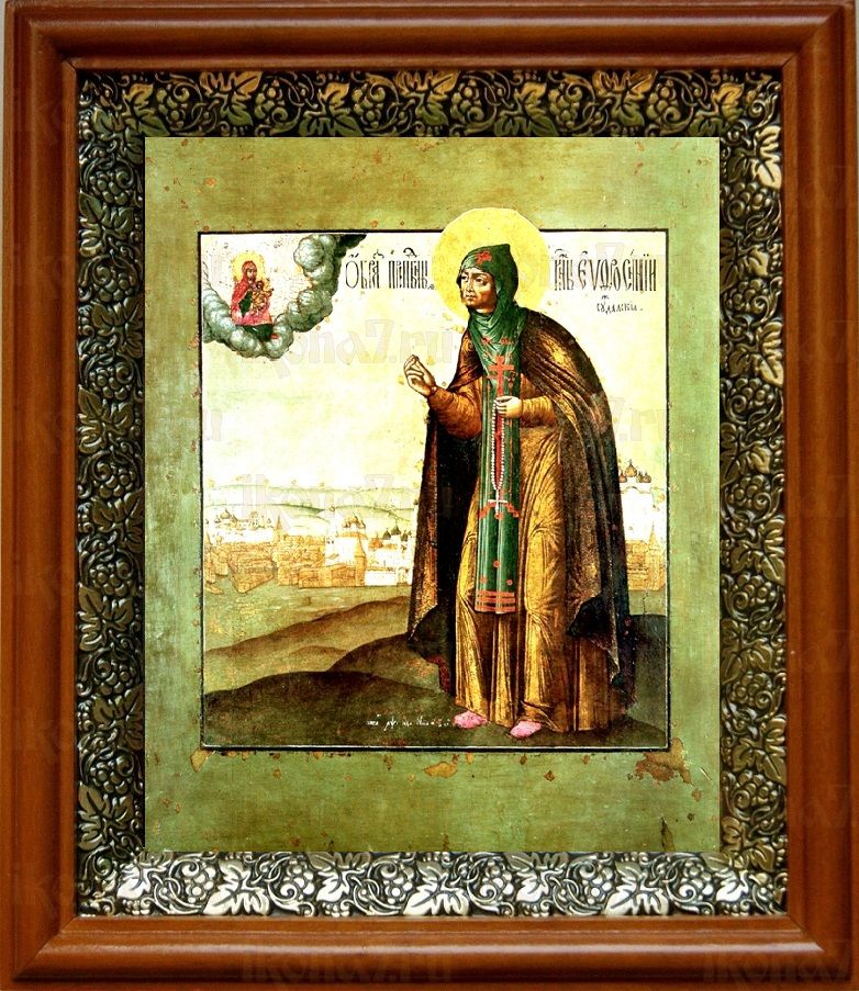 Икона Евфросиния Суздальская в киоте с басмой Виноградная Лоза (UV-печать)(30358)