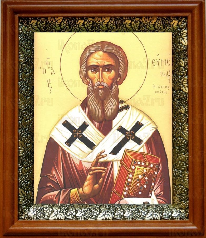 Икона Евмений Гортинский в киоте с басмой Виноградная Лоза (UV-печать)(30346)