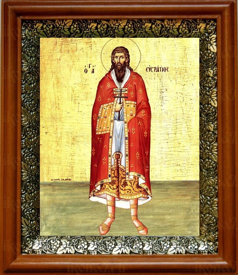 Икона Евстратий Севастийский в киоте с басмой Виноградная Лоза (UV-печать)(30347)