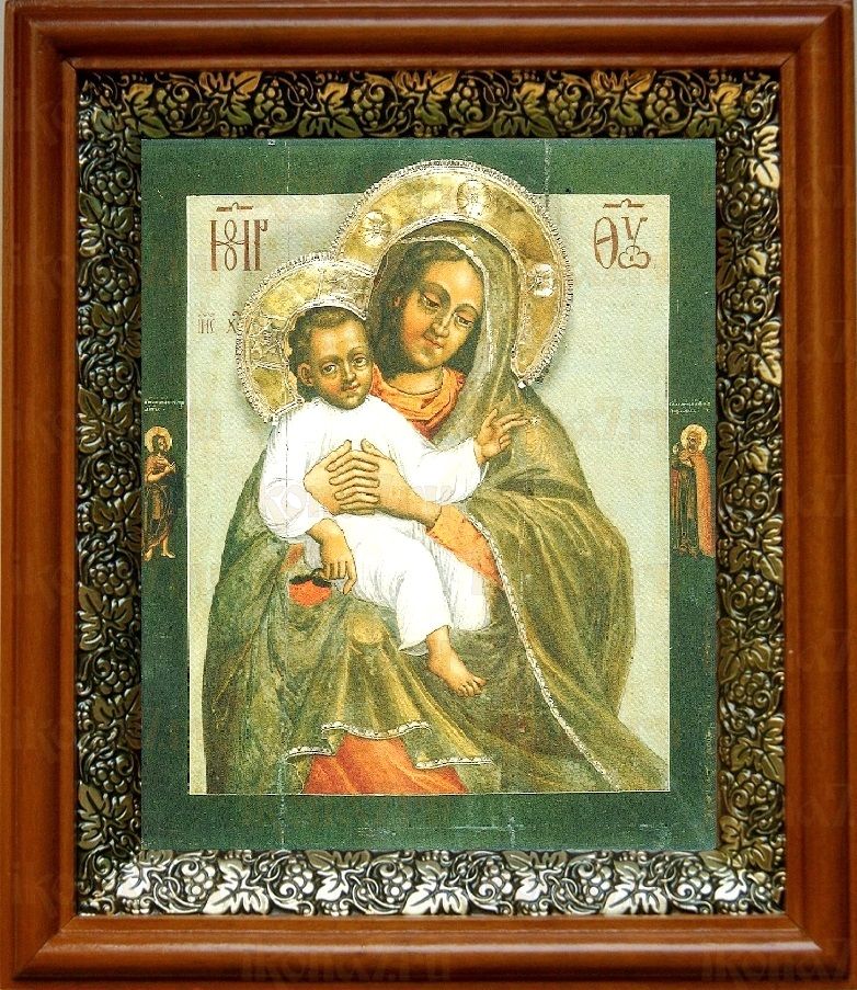 Евтропьевская икона Божьей Матери в киоте с басмой Виноградная Лоза (UV-печать)(30349)
